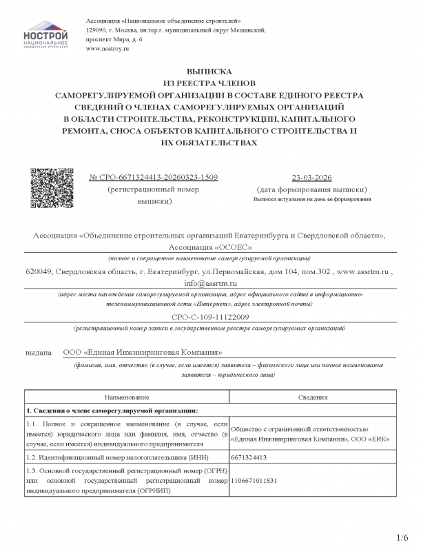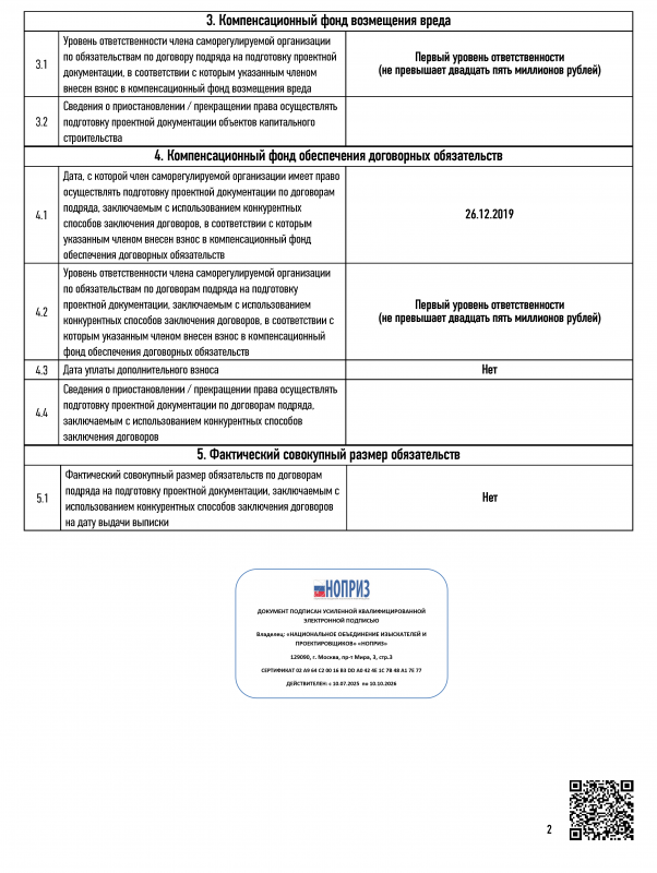 Выписка из Реестра членов саморегулируемой организации Ассоциация «Объединение профессиональных проектировщиков «РСП» (СРО-П-209-14032019)